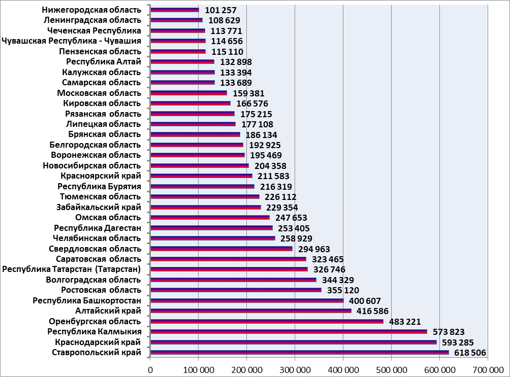 На Рис. 4 показана группа лидеров по количеству проведенных исследований, это 34 субъекта Российской Федерации, где оформлено в Весте более 100 тысяч исследований за сентябрь (в прошлом месяце таких было 21).