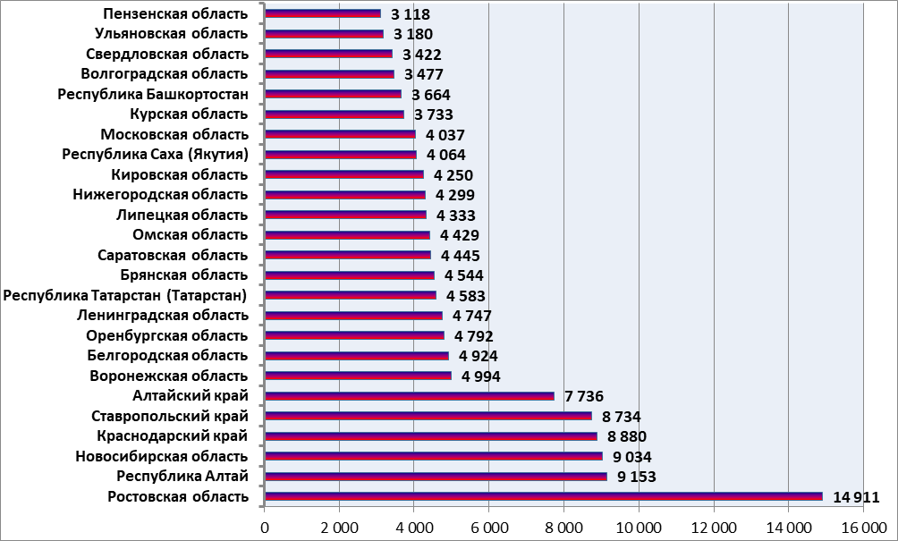 На Рис. 3 показана группа лидеров по количеству исследованных проб, это 25 субъектов Российской Федерации, где оформлено в Весте более 3 тысяч проб за сентябрь (в прошлом месяце таких было 20).