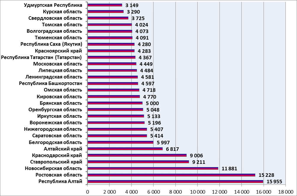 В то же самое время в 19 субъектах Российской Федерации отмечено снижение количества внесенных результатов исследований, это: Владимирская область, Волгоградская область, Еврейская автономная область, Кировская область, Костромская область, Краснодарский край, Ленинградская область, Мурманская область, Оренбургская область, Республика Калмыкия, Рязанская область, Санкт-Петербург, Сахалинская область, Тюменская область, Удмуртская Республика, Чеченская Республика, Чувашская Республика - Чувашия, Чукотский автономный округ, Ямало-Ненецкий автономный округ. Остальные, соответственно, являются середнячками.