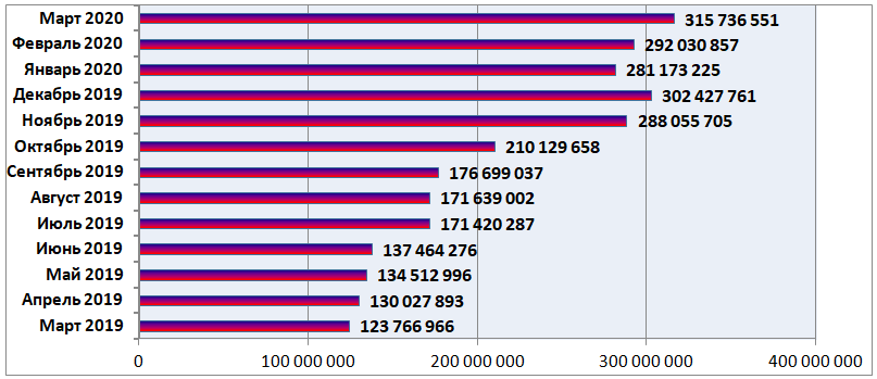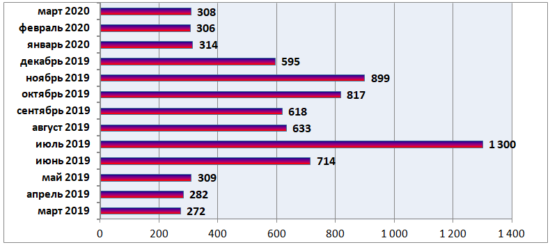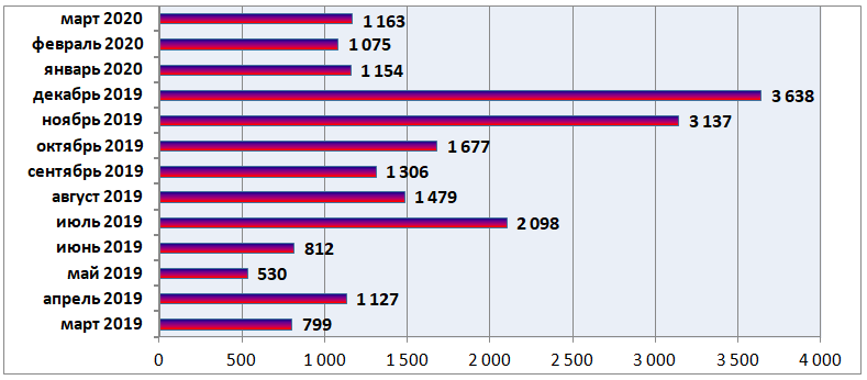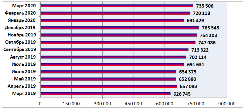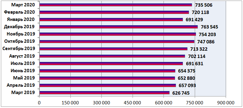 На Рис. 1 показана общая динамика оформления эВСД за истекшие 13 месяцев, начиная марта 2019 года.