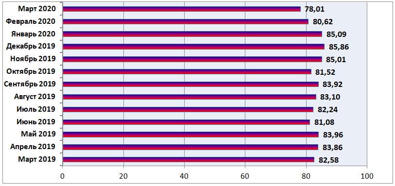 С января 2017 года ветслужбы ведут учет ВСД, оформленных на бумажных носителях. В марте 2020 г. эта цифра составила 51’022 ВСД против 45’508 ВСД в феврале. Обратите внимание, что здесь учитываются только те ВСД, при оформлении, которых было отмечено поле «Учет ВСД, оформленных на бумажном носителе», если ВСД оформляется в системе Меркурий, а затем распечатывается на защищенном бланке, то он учитывается сразу как электронный и в данной выборке не участвует.